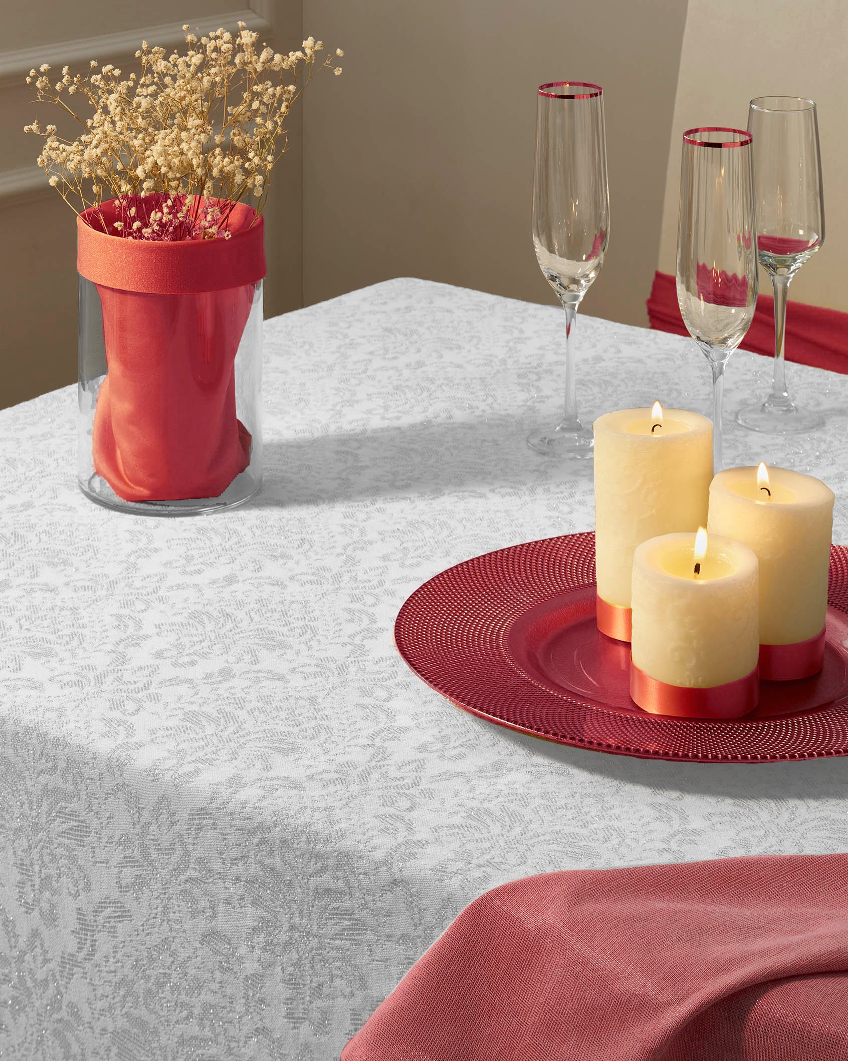 ATENAS | 防污檯布 - Ainsa 銀/白色
