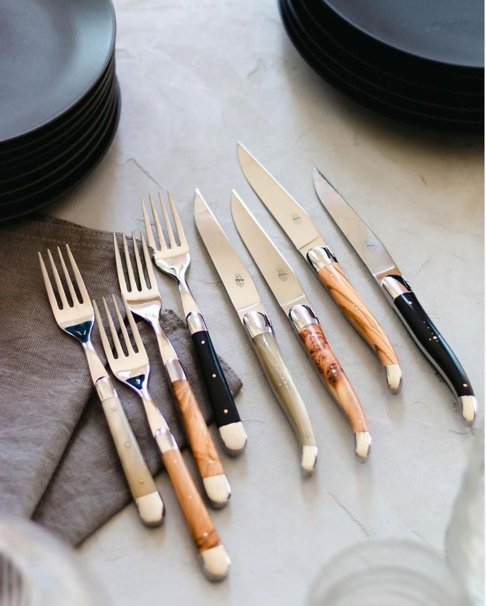 FORGE DE LAGUIOLE | 主餐刀义, 2件裝不銹鋼鏡面配鹿角手柄